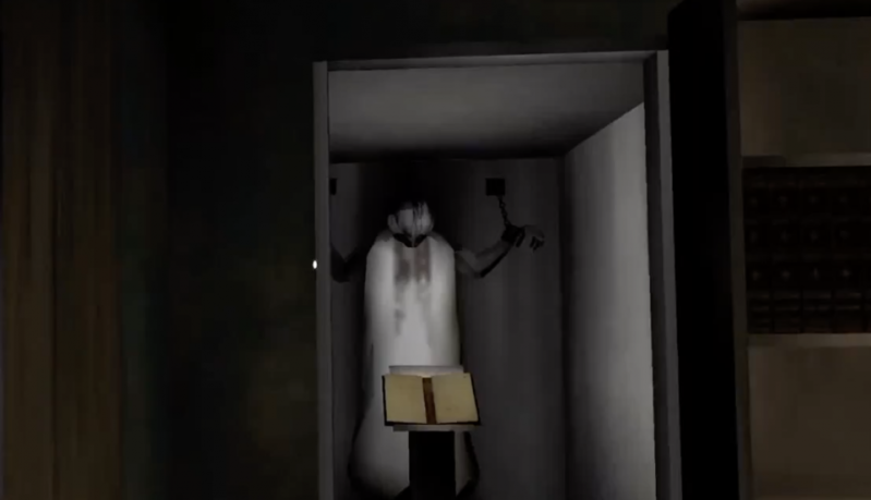 De moeder in het spel is ook een boek te vinden dat boek is nuttig om te hebben want in de slaapkamer waar het boekenrek staat heb je het nodig in die kamer is ook een spiegel te vinden achter de spiegel vind je een hendel doe de spiegel van de muur en druk op de hendel dan zie je dat het boekenrek verschuift achter het rek zie je een grote spons met een staander ervoor plaats het boek op de staander om de spons weg te halen wat je dan ziet is de moeder van granny